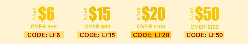 🎁$59-$6 CODE:LF6 🎁$89-$15 CODE:LF15 🎁$109-$20 CODE:LF20 🎁 $199-$50 CODE:LF50
