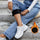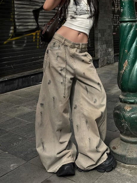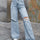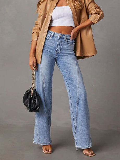 Straight-leg Pants, Water Wash Wide-leg Pants Elastic Waist Jeans