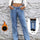 Straight-leg Pants With Contrasting Stitching Big Pocket Elastic Waistband Daily Work Jeans