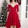 $30.64 USDUnit price /UnavailableChristmas Plush Splicing Long Sleeves Off-the-shoulder Neckline Zipper Midi Dresses