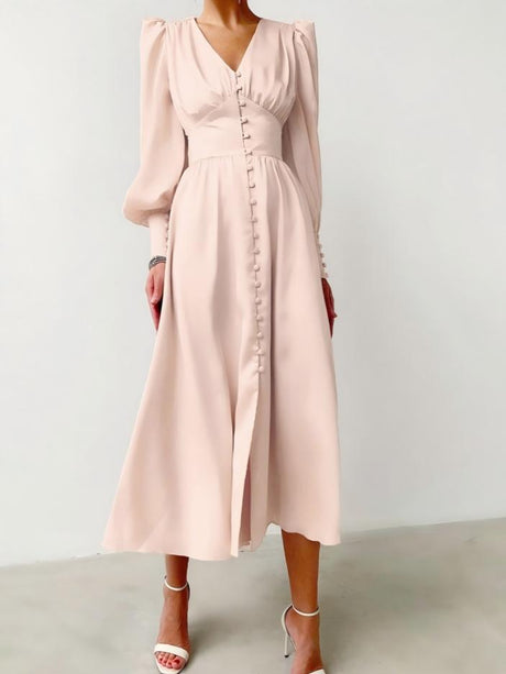 $23.76 USDUnit price /Unavailable+4V-neck Lace Splicing Long Sleeve Slit Temperament Commuting Dinner Maxi Dresses