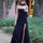 $45.61 USDUnit price /UnavailableBlack Sloping Shoulders Spliced Feathers Slim Fit Long Evening Dress