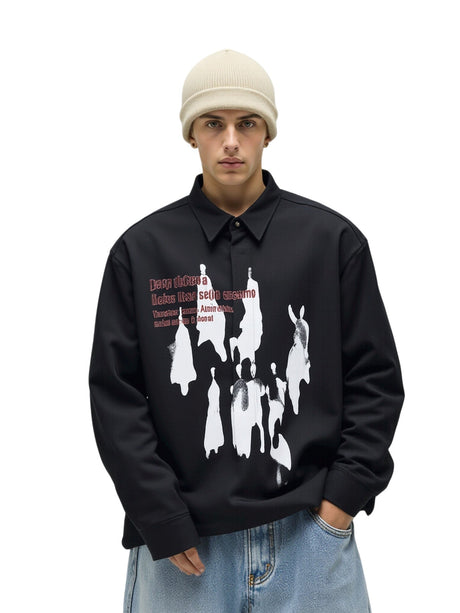 $51.74 USDUnit price /UnavailableFake Two Pieces Vertical Stripe Dark Graffiti Ink Prints Paneled Long-sleeved Shirt