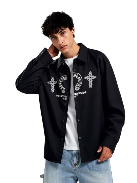 $45.98 USDUnit price /UnavailableHip Hop Washing Old Letter Embroidery Stand Collar Long-sleeved Shirt