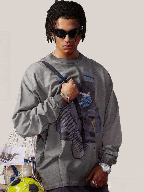 $26.23 USDUnit price /UnavailableDirect Inkjet Printing Distressed Edge Vintage Style Stir-fry Color Long-sleeved T-shirt