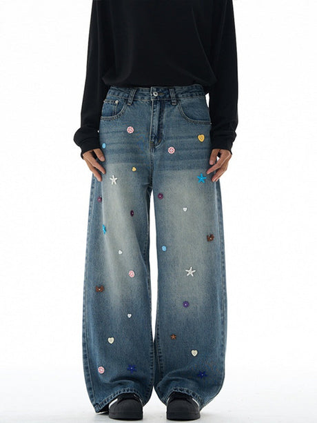 Vintage Denim Primary Color A-shaped Base Simplicity Floor-length Jeans