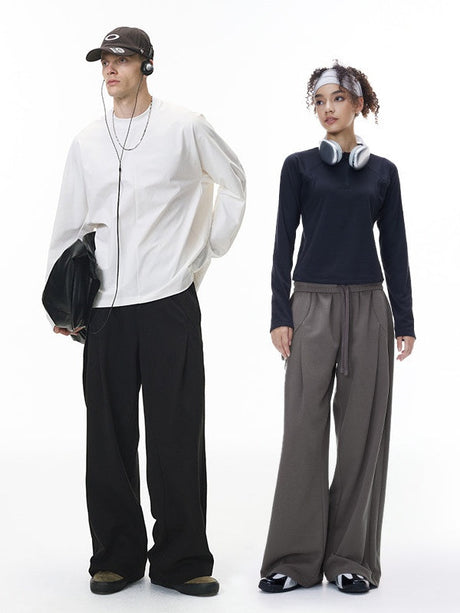 Liber Summer Neutral wear Trouser leg stitching Solid Color Pants