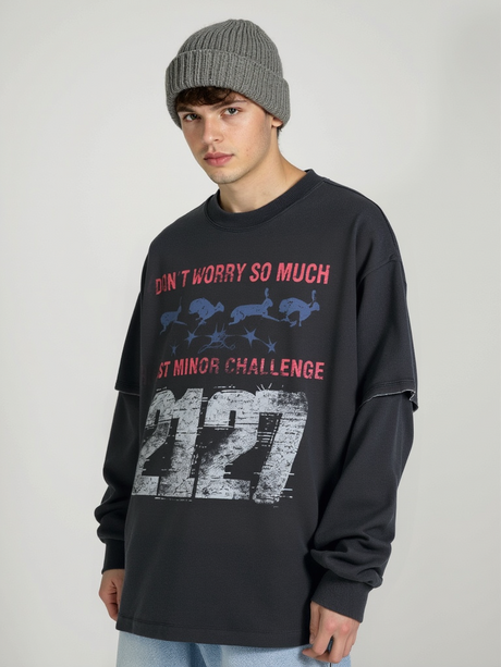 Digital Printing Washing And Aging Fake Two Pieces Yabi Long T-shirt