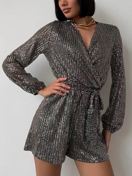 $37.48 USDUnit price /UnavailableDeep V Sequins Rough Edges Long Sleeves Hip Wrap Mini&Short Dresses
