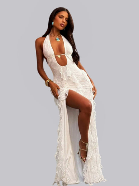 $43.81 USDUnit price /UnavailableLace Patchwork Chest Pleats Slip Dress Hot Girl With Exposed Back And Slit Mesh Maxi Dresses