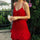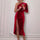 One-shoulder Christmas Velvet Claret A-line Cocktail Party Formal Midi Dress