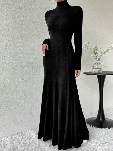 $37.50 USDUnit price /Unavailable+4Hip-wrapped Velvet Turtleneck Square Collar Stitching Back Slit Elegant Long Dress