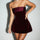 $33.36 USDUnit price /UnavailableA-style Wine Red Velvet Stripes Long Sleeve Bow Ruffle Cocktail Party Christmas Short Dress