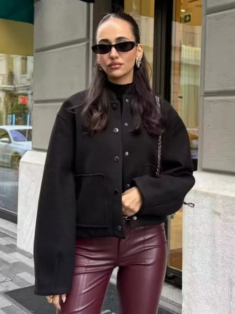 $33.75 USDUnit price /UnavailableStand Collar Buttoned Fashionable Short Long-sleeved Jacket Suit Coat
