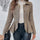 Distressed Cardigan Style Leopard Print Slim Fit Workplace Casual Suit Jacket