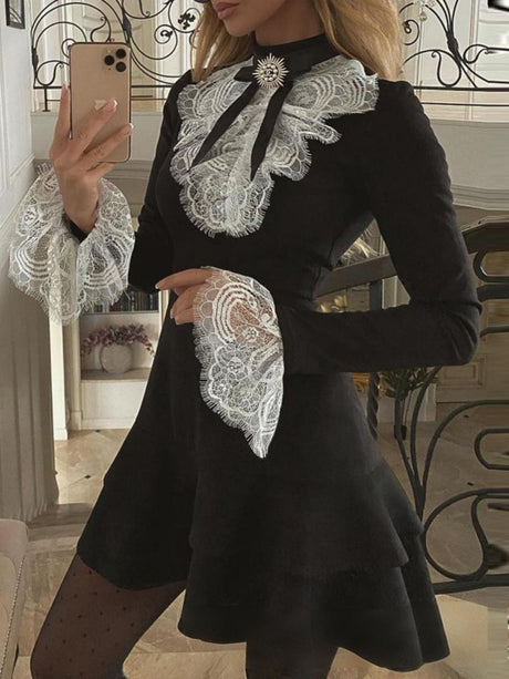 $32.64 USDUnit price /UnavailableRuffled Retro Splicing Ladies French Lapel Long Dress Knitted Skirt Sweater Dress