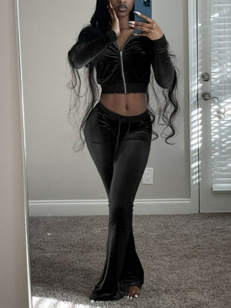 $32.64 USDUnit price /Unavailable+1Velvet Splicing Sexy Long-sleeved Casual Navel-baring Top 2-piece Sets