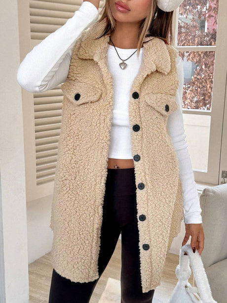 Solid Color Lapel Open Buckle Loose Temperament Commuting Imitation Lambskin Vests