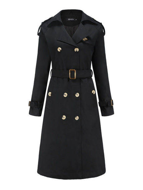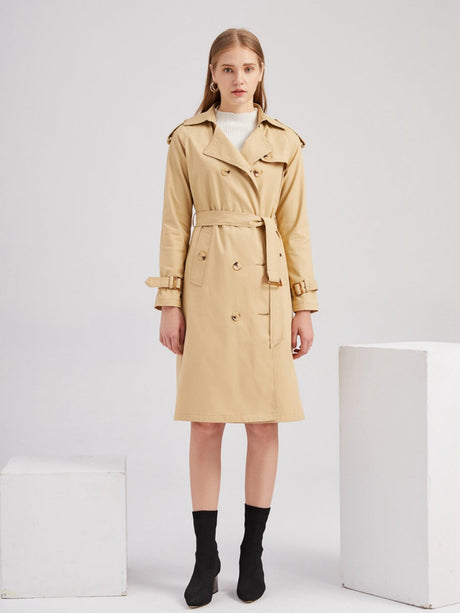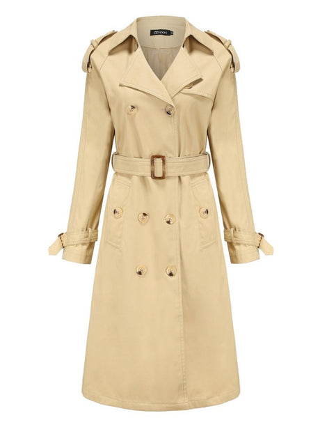 $41.32 USDUnit price /Unavailable+2Waist-hugging Cotton Long Sleeve Lapel Three-dimensional Decoration Solid Color Trench Coats