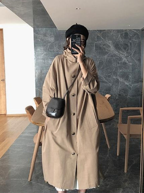 $29.96 USDUnit price /Unavailable+1Temperament Commuting Beltless Lapel Loose Style Buttons Mid-length Coats