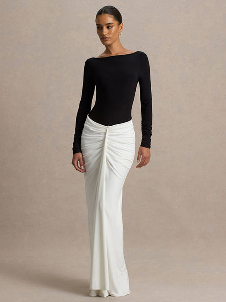 $18.04 USDUnit price /UnavailableHip-hugging Long-sleeved Contrasting Color Crimp Spliced Long Dress