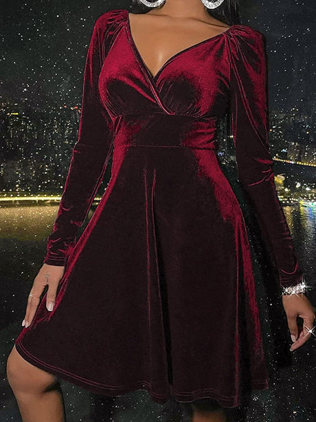 $27.70 USDUnit price /UnavailableTight-fitting Mercerized Velvet Simplicity Swing Collar Long-sleeved Short Dress