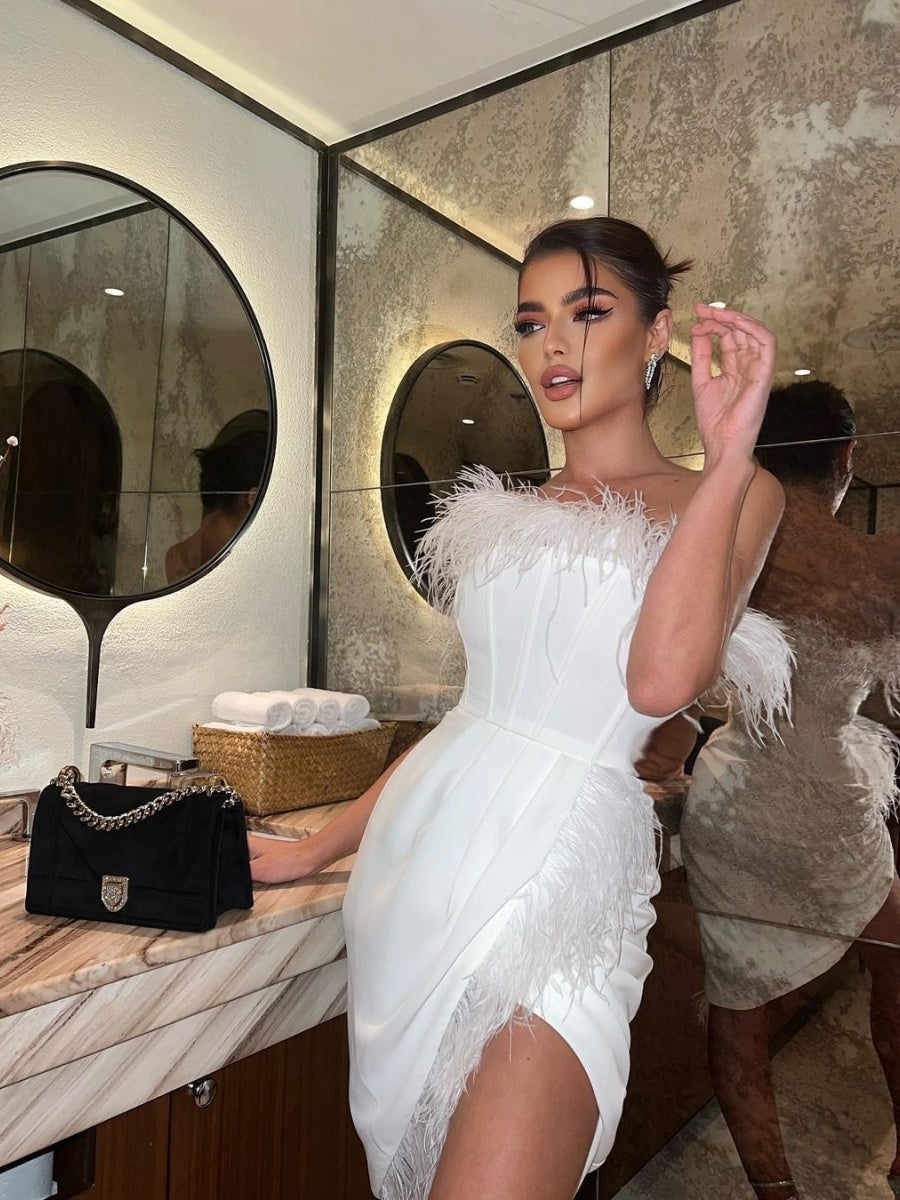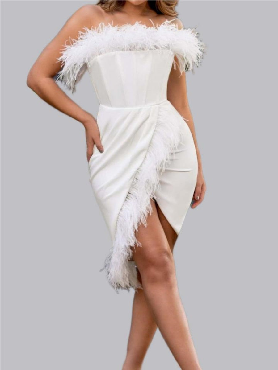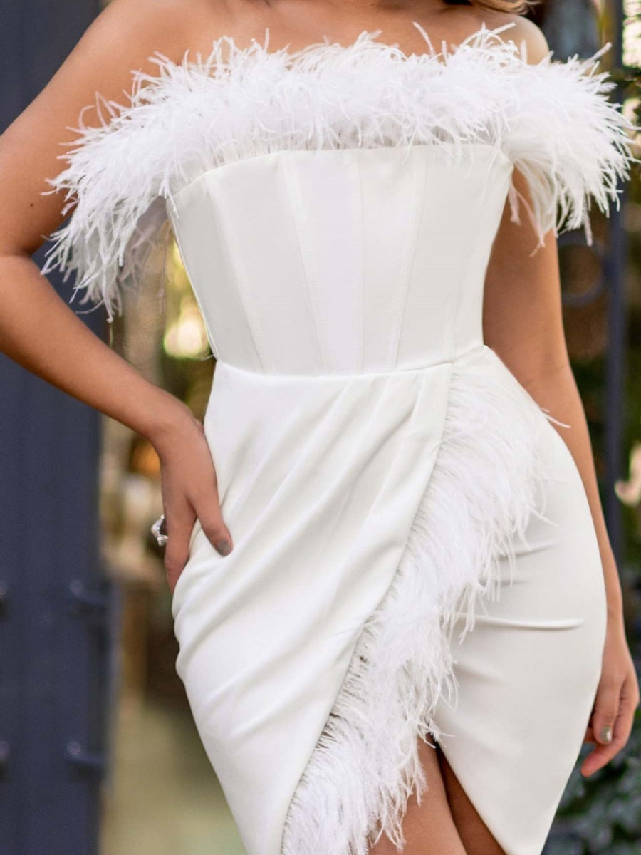 Mini- und kurze Kleider mit Feder-Fischgrätenmuster, figurbetontem Schlitz und hohem Beinschlitz für Partys