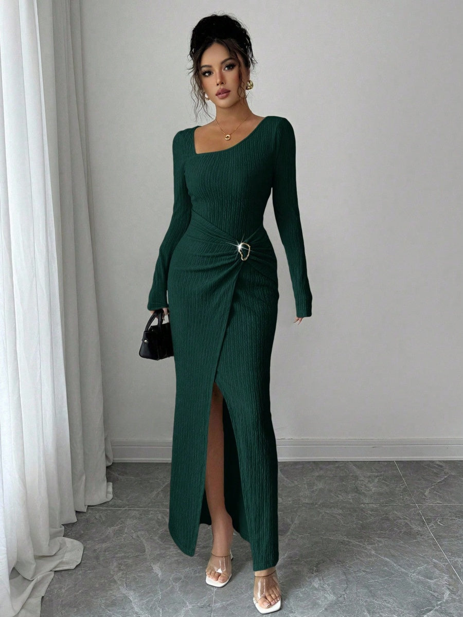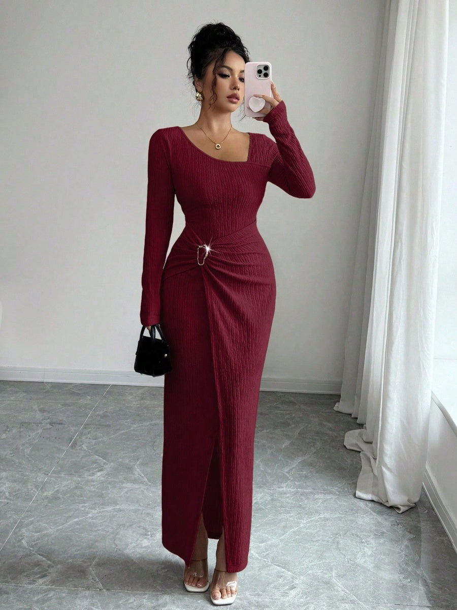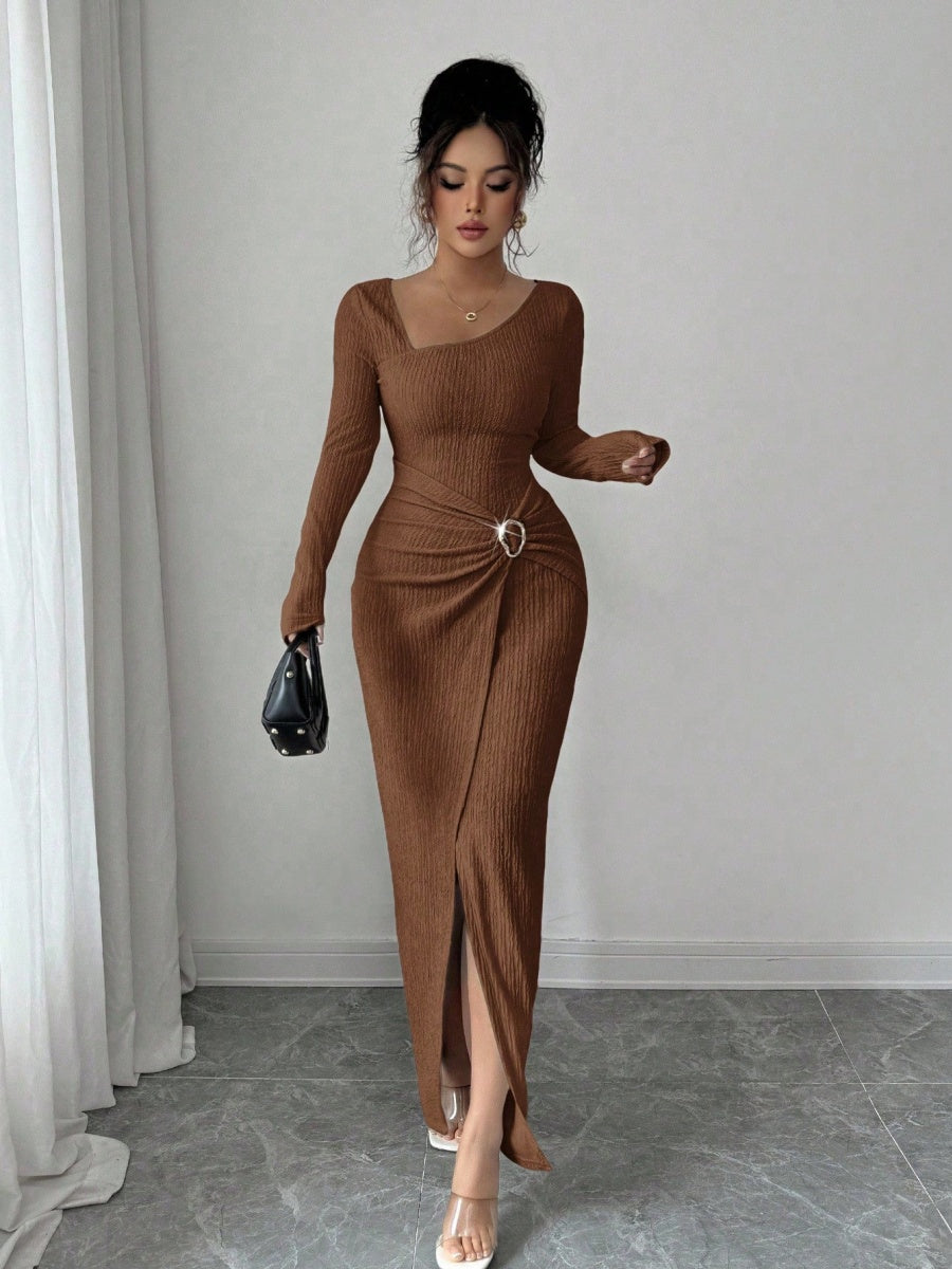 Maxikleider mit unregelmäßigem Ausschnitt und einfarbiger Strickstruktur