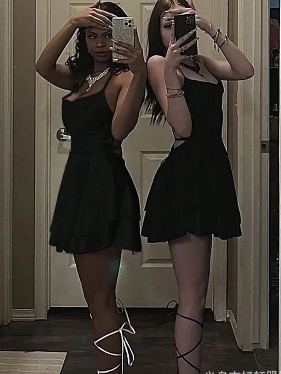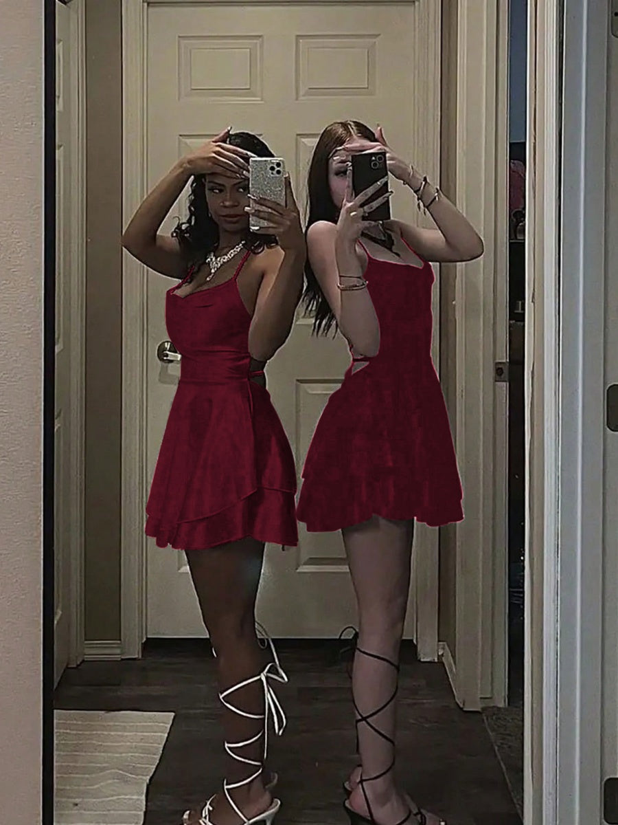 Camisoles, Mini- und kurze Kleider mit Swingkragen, rückenfrei, mit Kordelzug