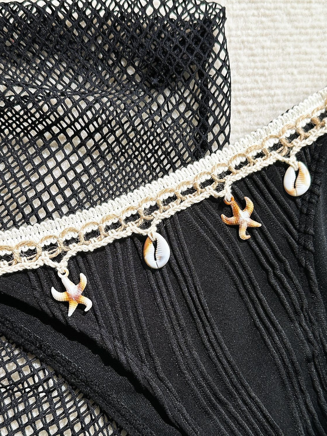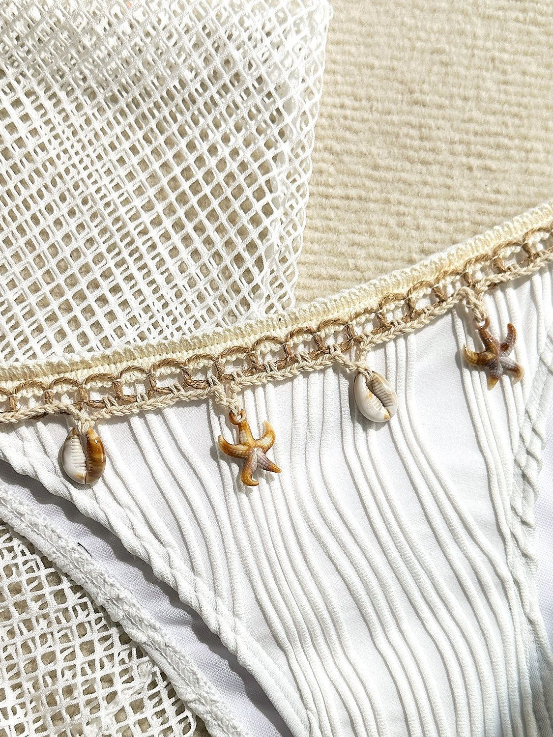 Starfish Tassel Bikini Mesh Mini Skirt Three-piece Set