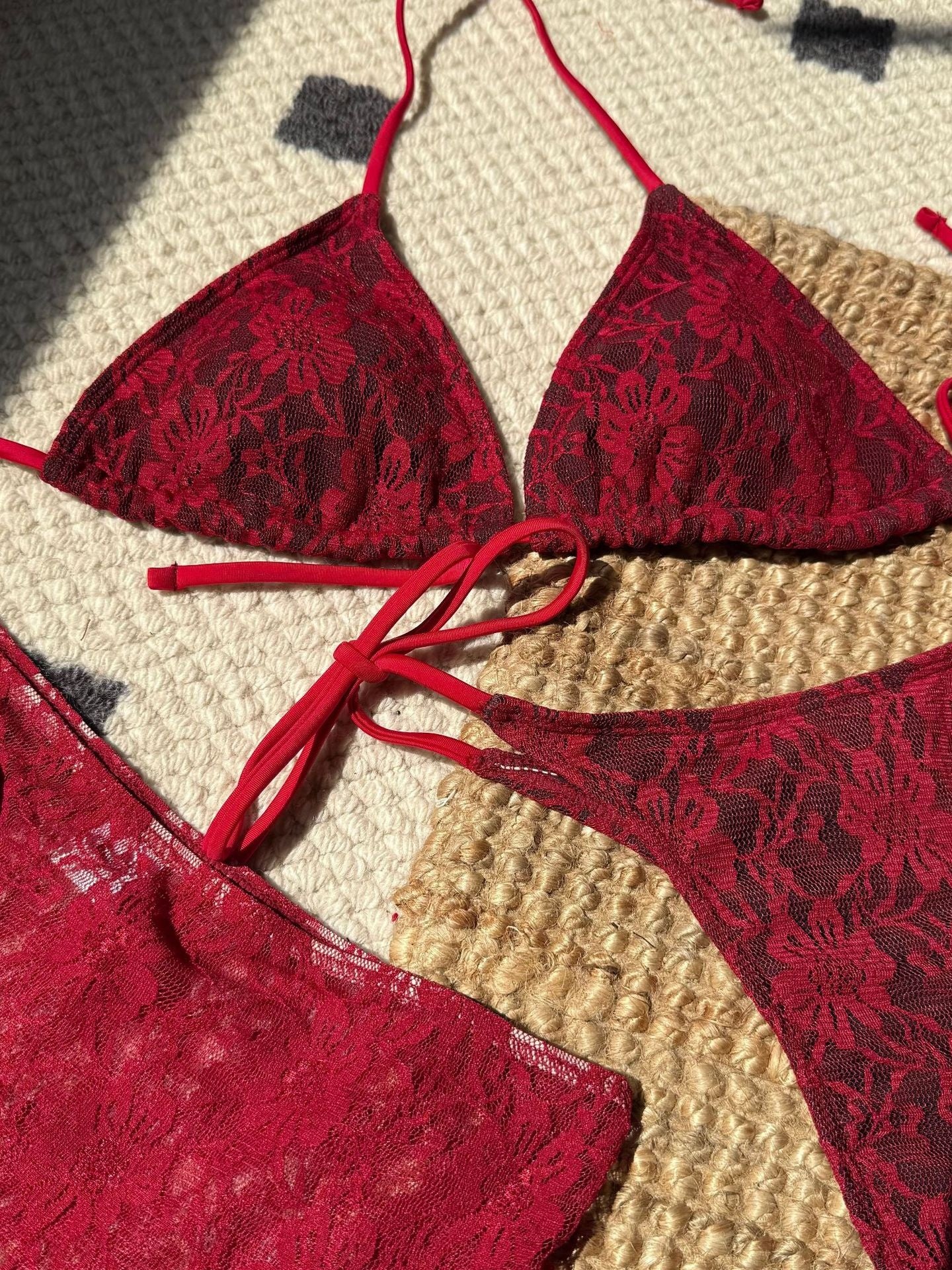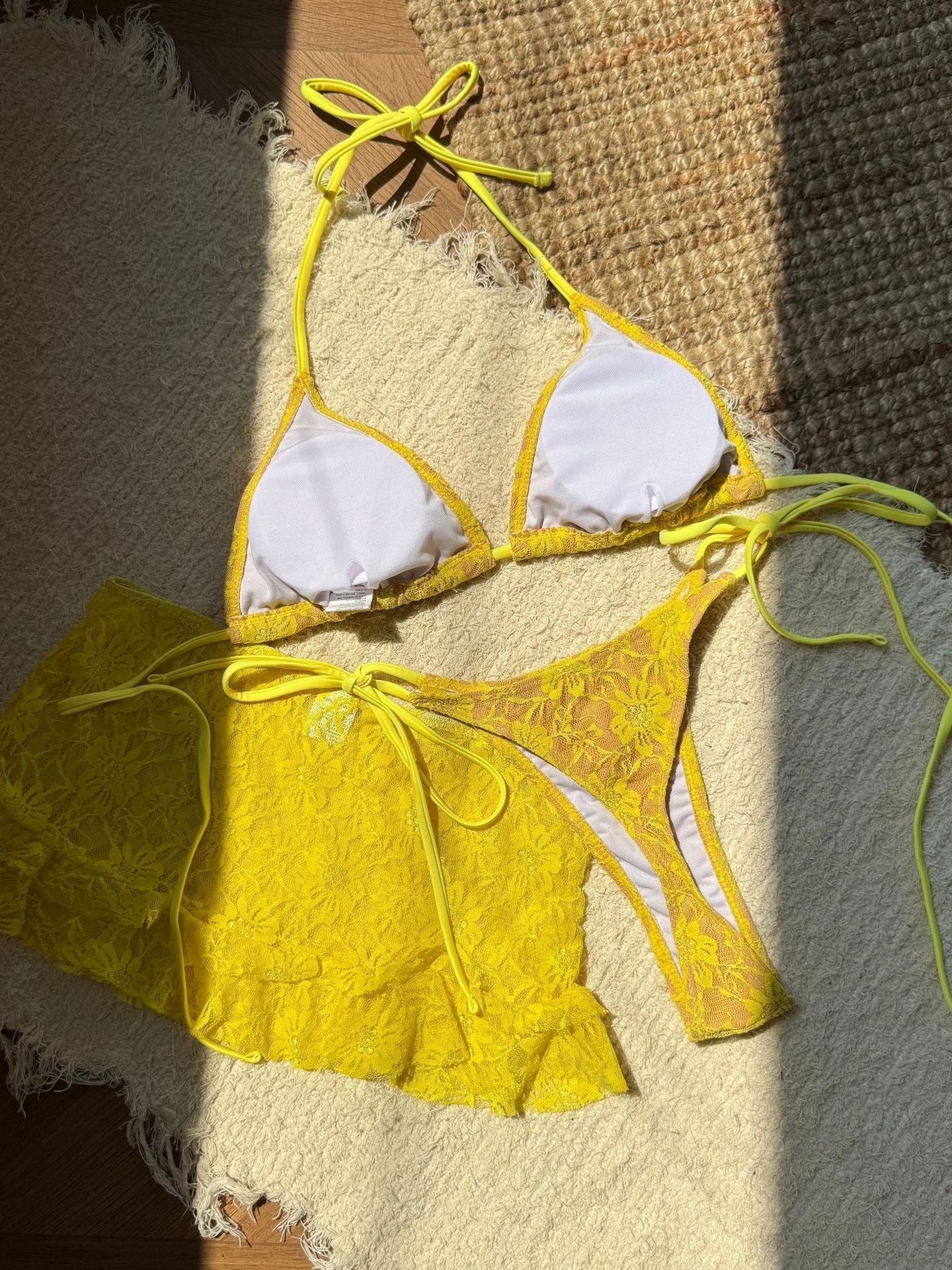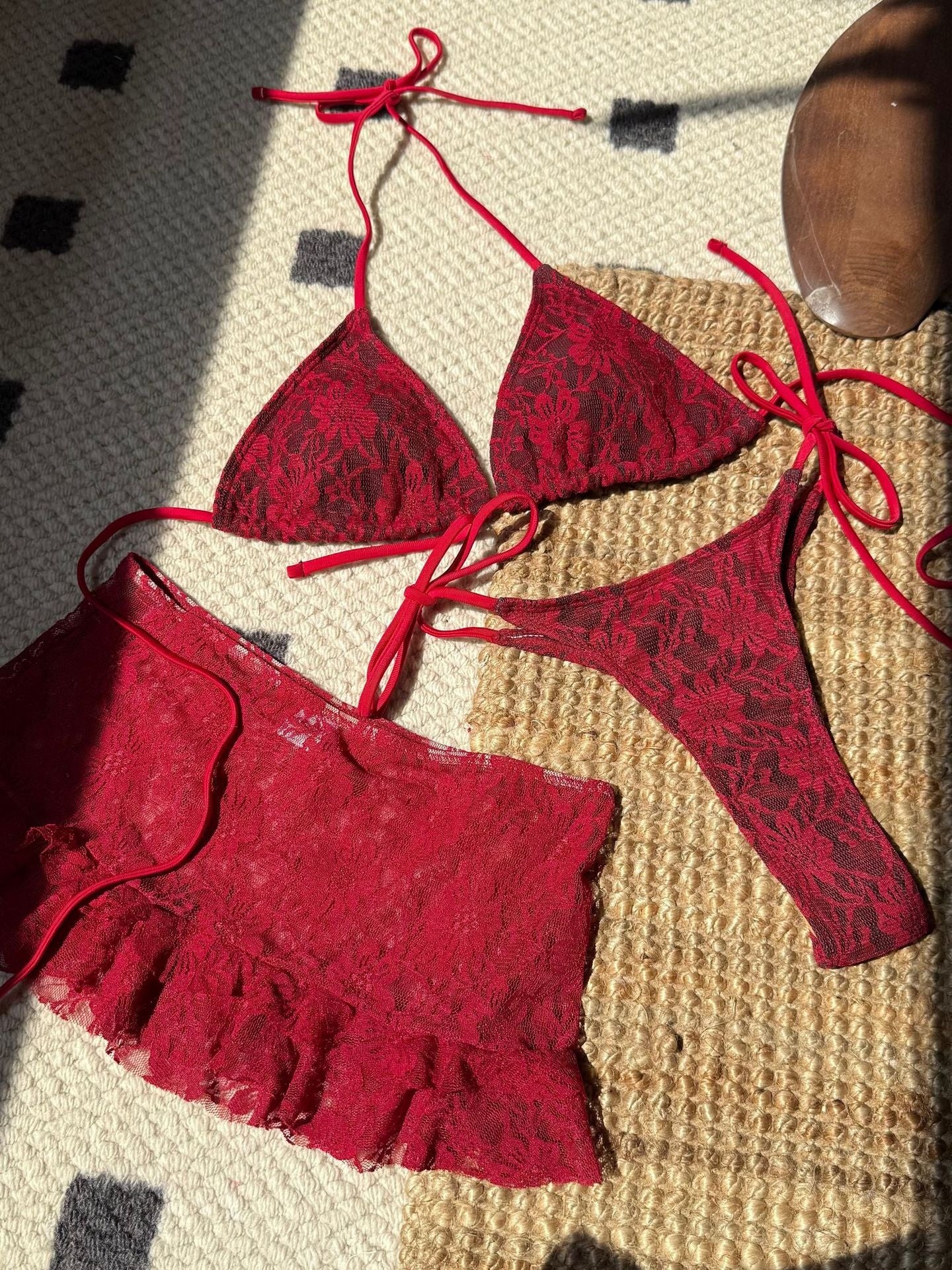 Sexy Lace Cutout Bikini Three-Piece Set For Beach