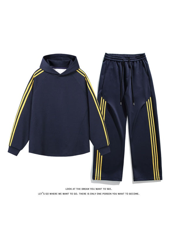 Set aus farblich abgesetzten Streifen, geraden Hosen und Kapuzenpullover