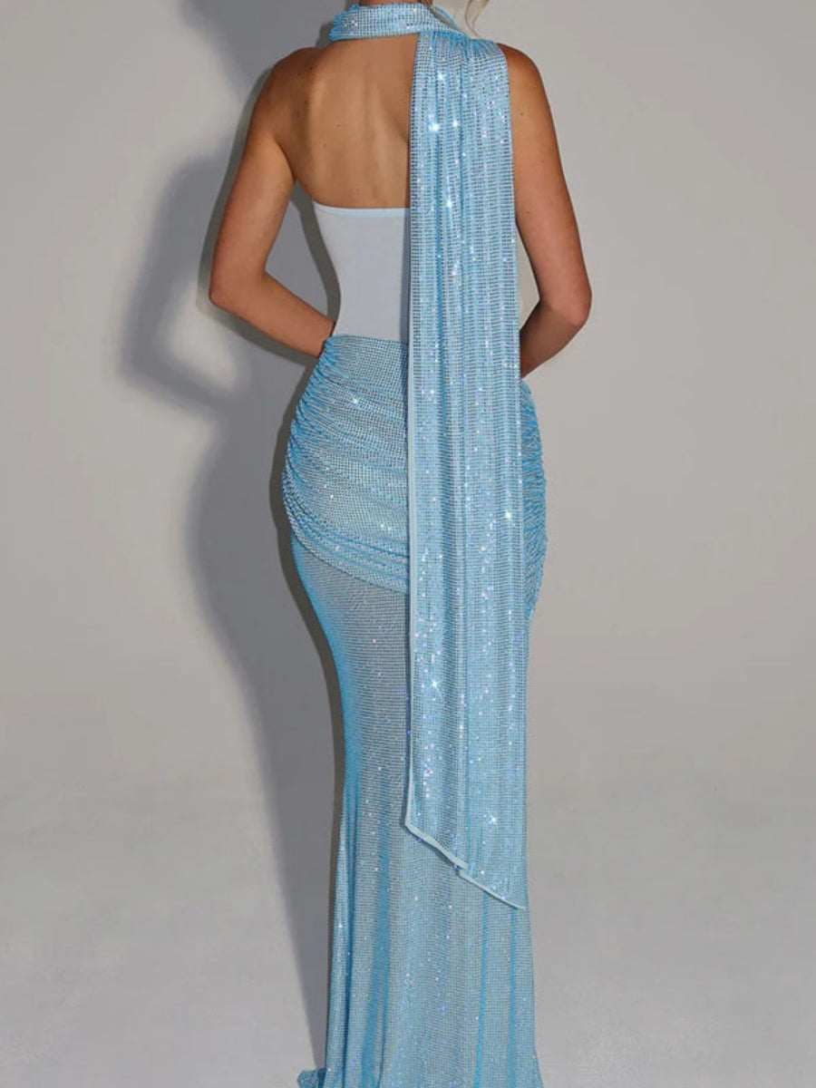 Tube-Top-Kleid mit Schleife, transparenten Details, eleganten Blitzlichtern, Partykleidern, Maxikleidern