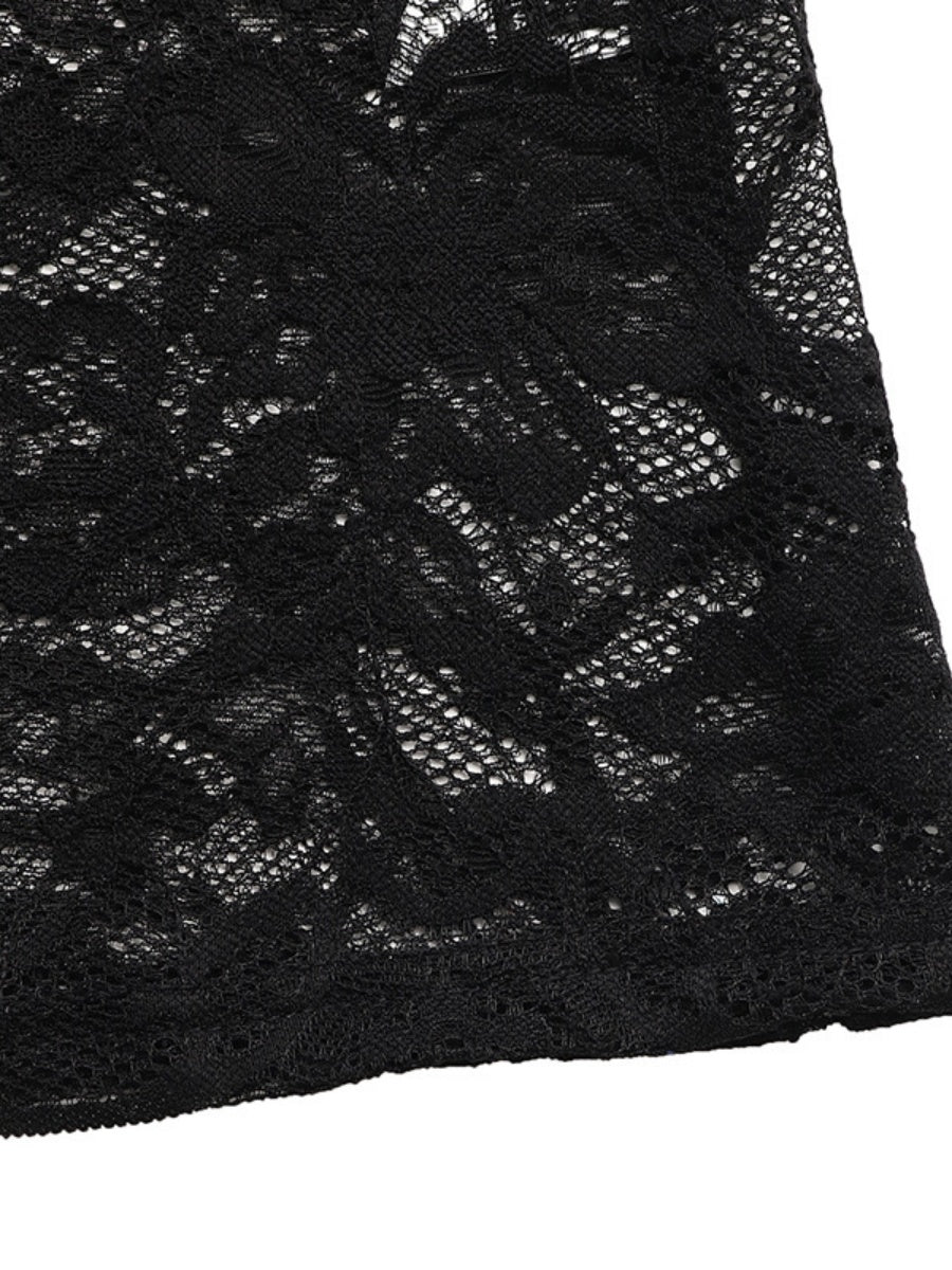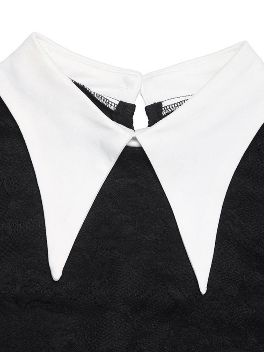 Lace Splicing Color-blocked Collar Slim-fit Hip-hugging Maxi Dresses
