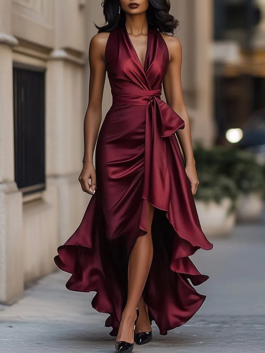Maxikleider mit V-Ausschnitt und unregelmäßigen Rüschen