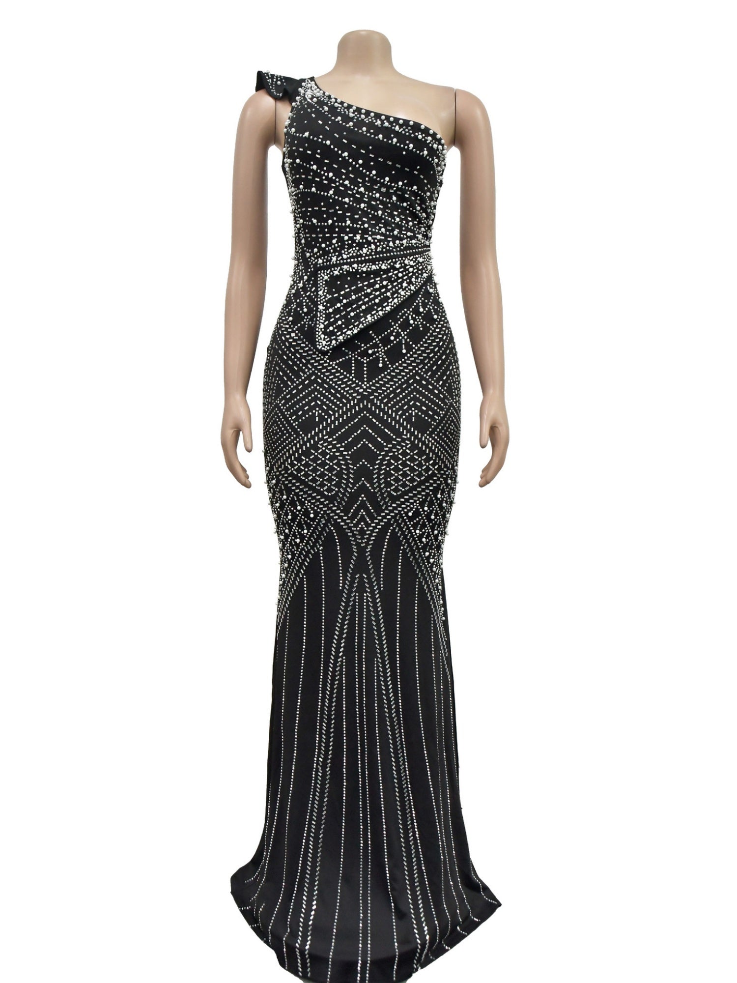Strassbesetzte, asymmetrische, glänzende Party-Maxikleider