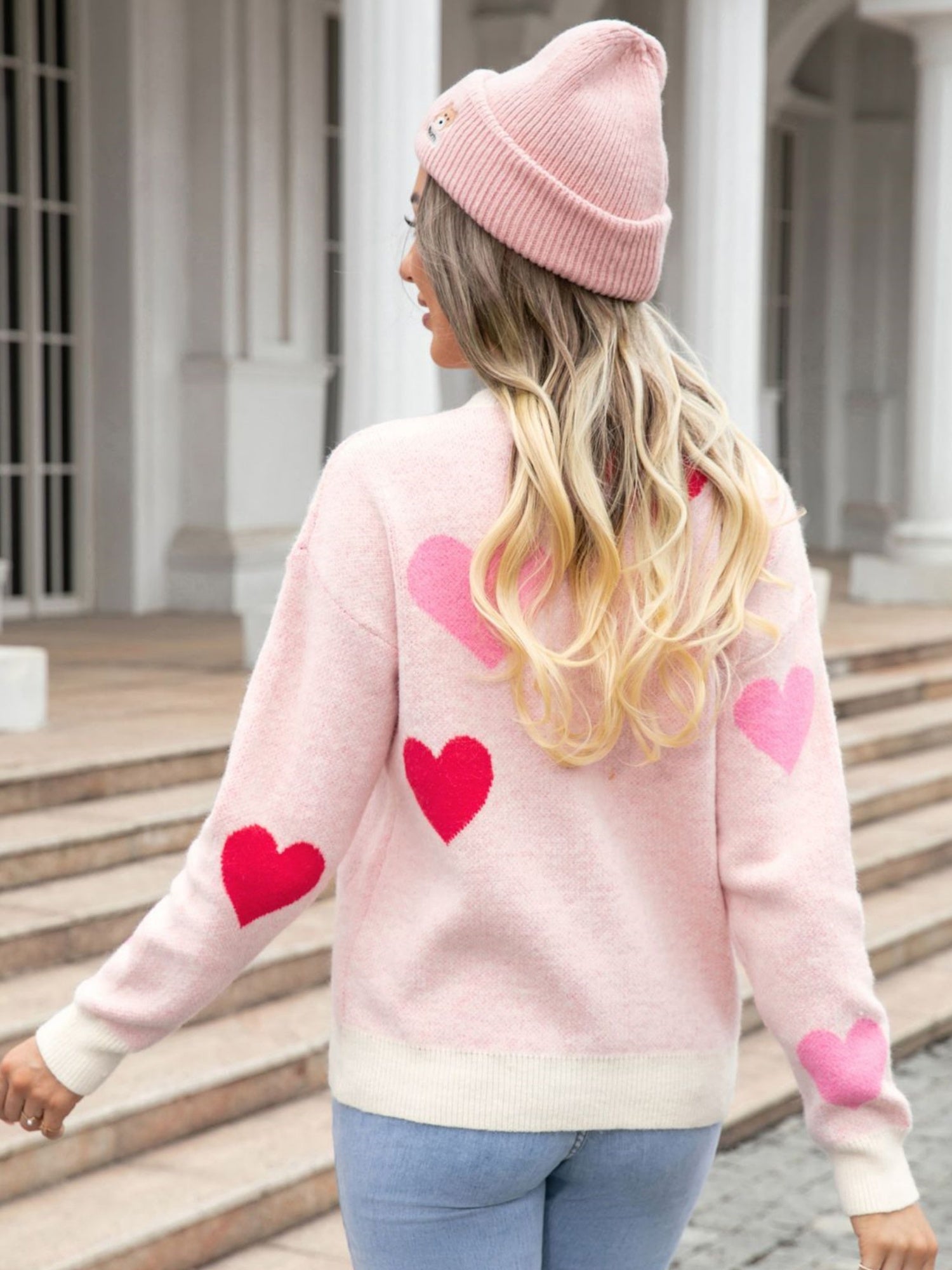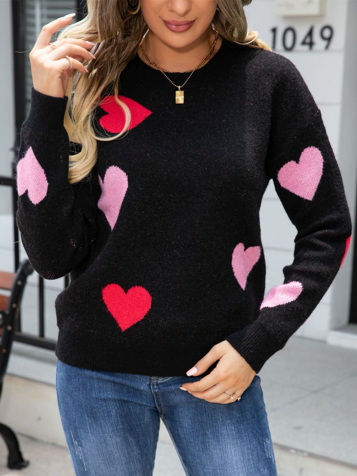 Valentinstags-Strickpullover mit Farbblockmuster