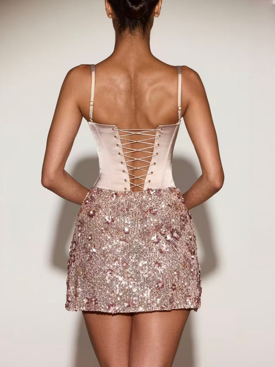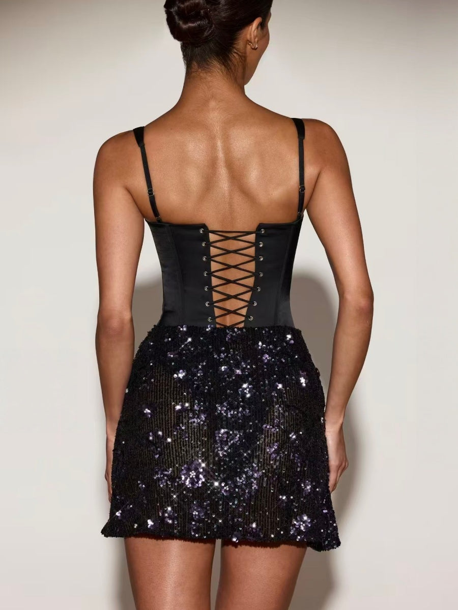 Plissierte Pailletten-Party-Fischgräten-Dekorationen Mini- und kurze Kleider