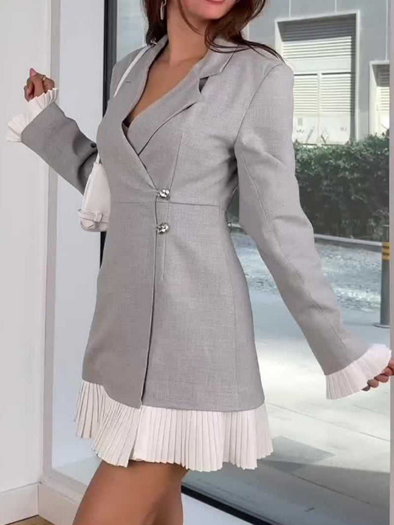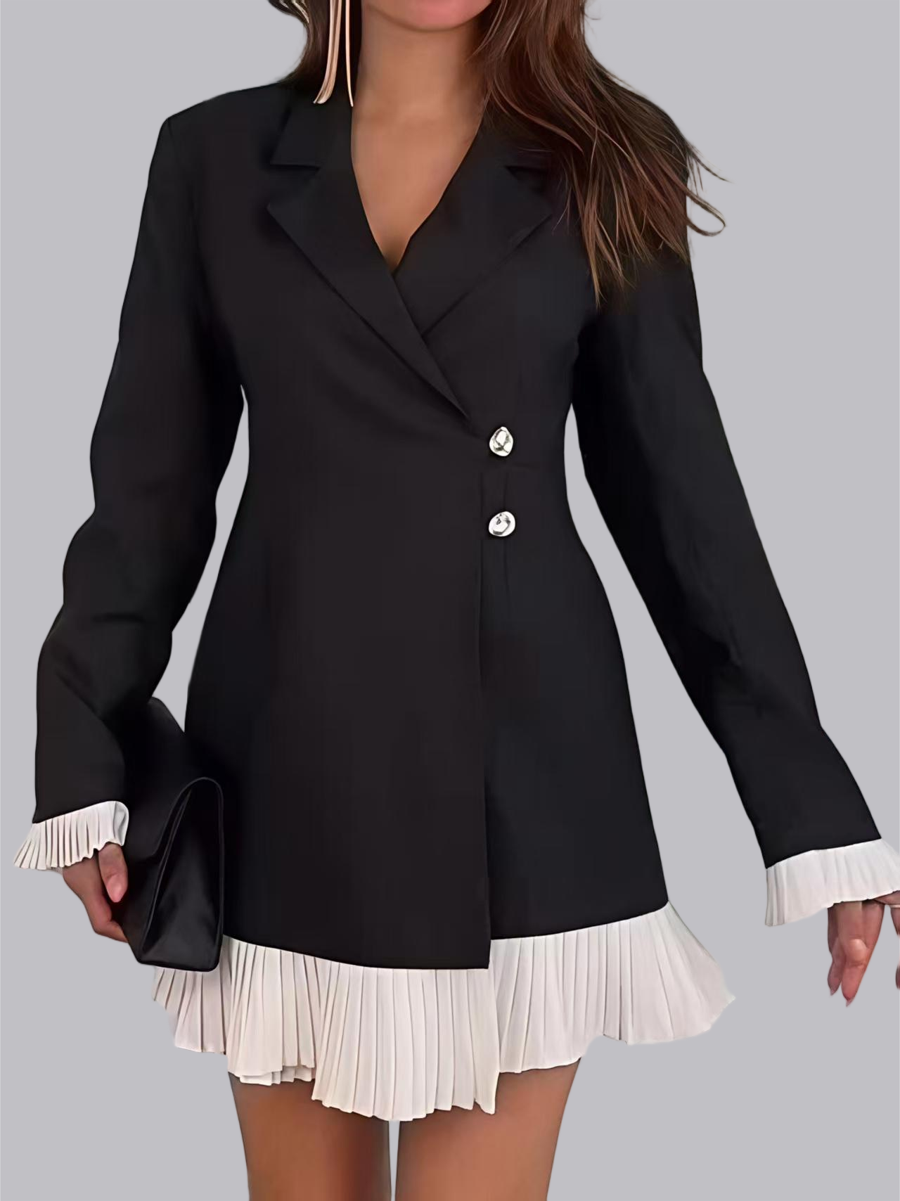 Langärmlige, farblich abgesetzte Blazer mit Faltenrock