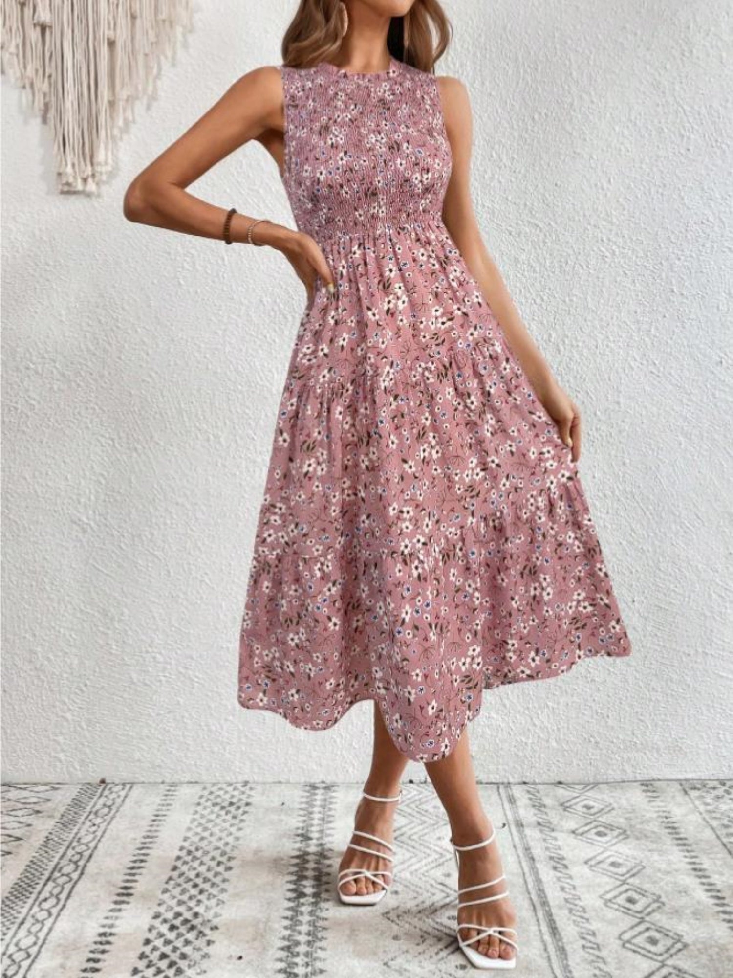 Floral Print Round Neck Sleeveless Maxi Dresses