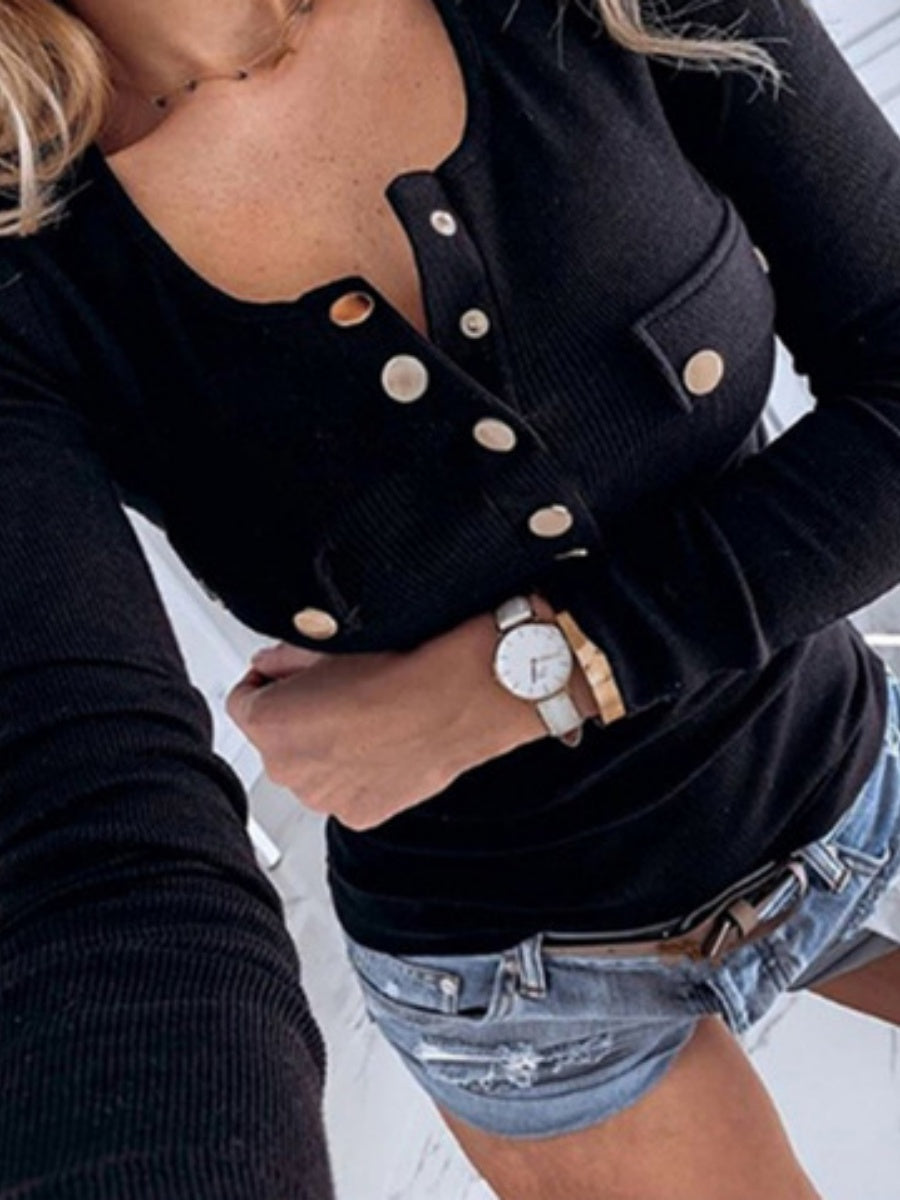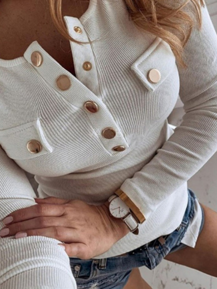 Langarm-Unterhemd mit Knopfverzierung, Strickwaren, T-Shirts