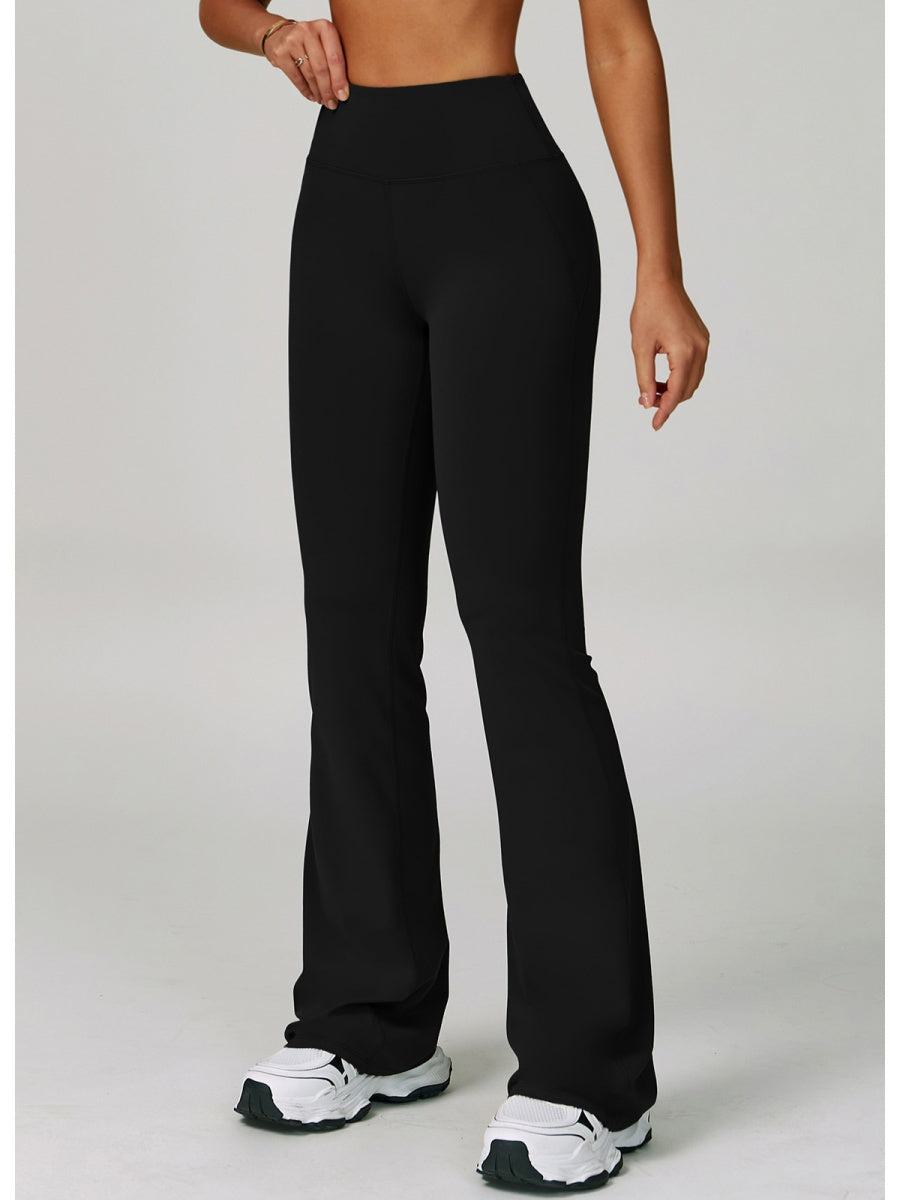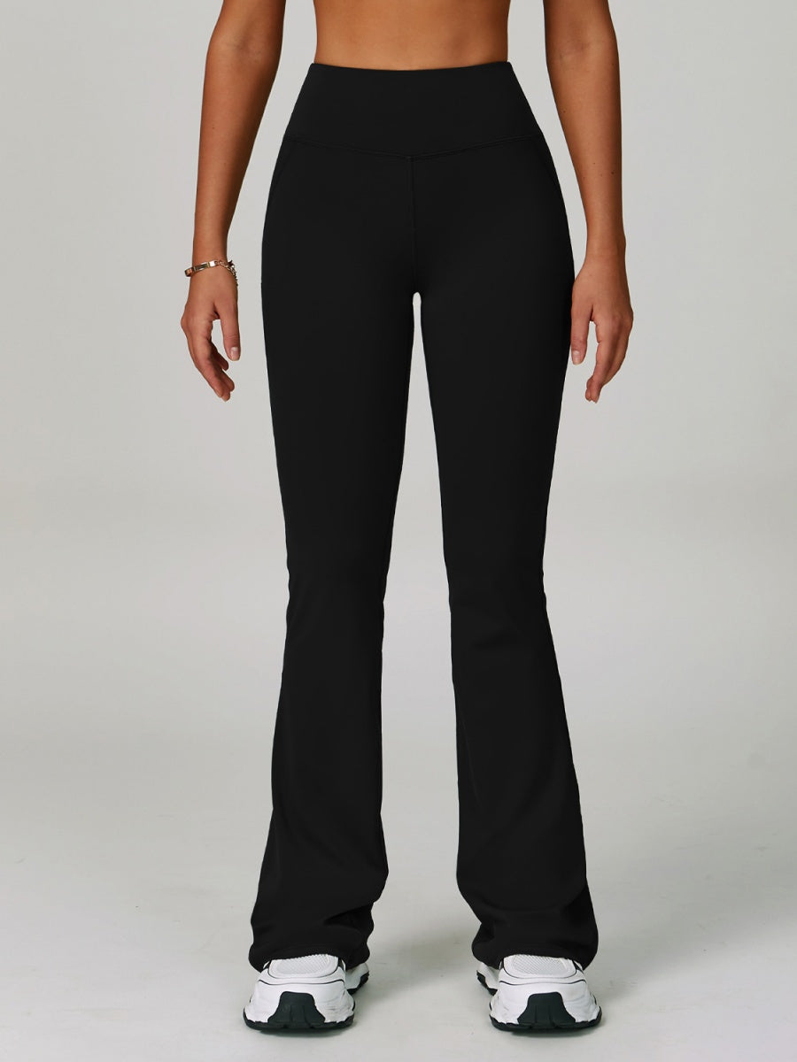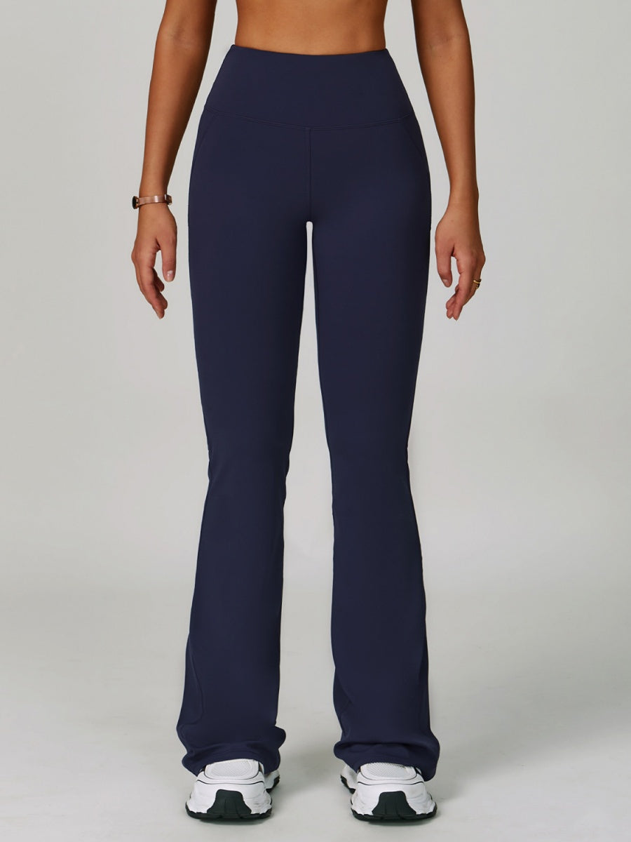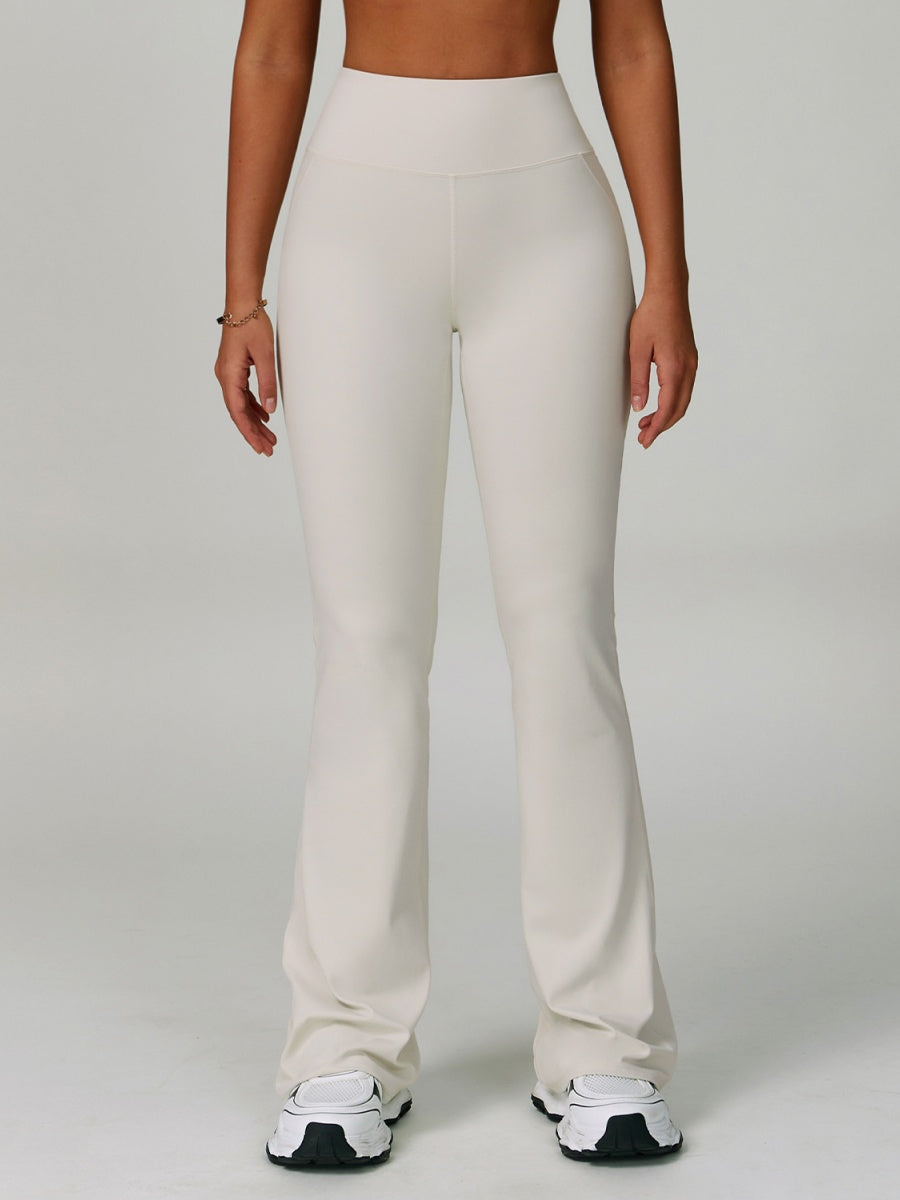 Hochgeschnittene, hüftformende, weit geschnittene Schlaghose