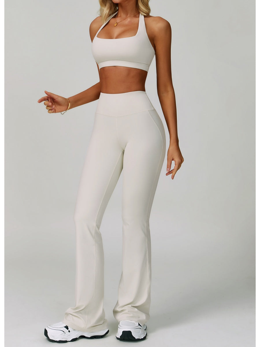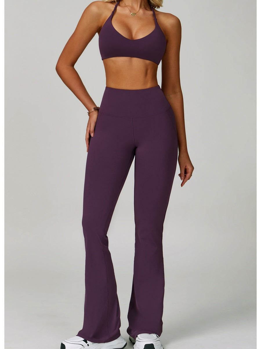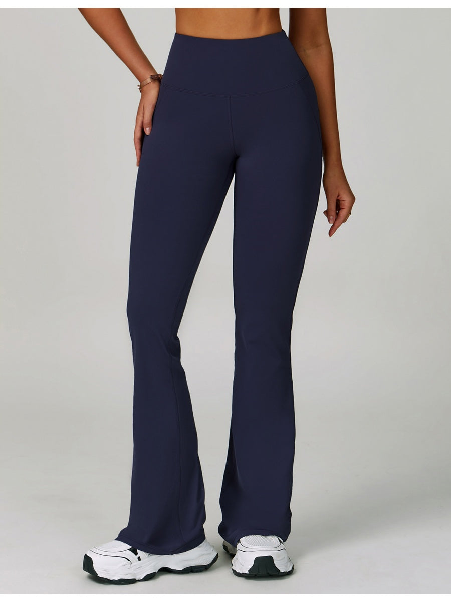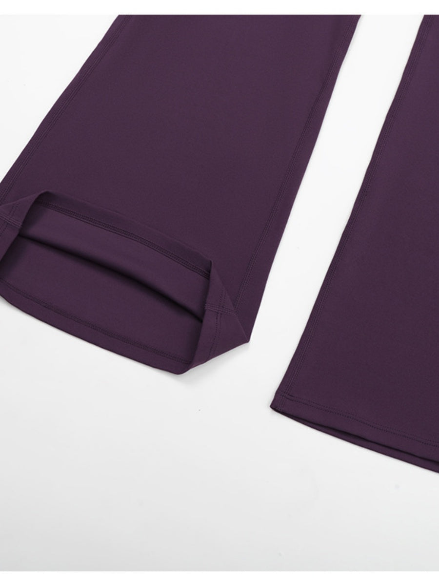 Hochgeschnittene, hüftformende, weit geschnittene Schlaghose