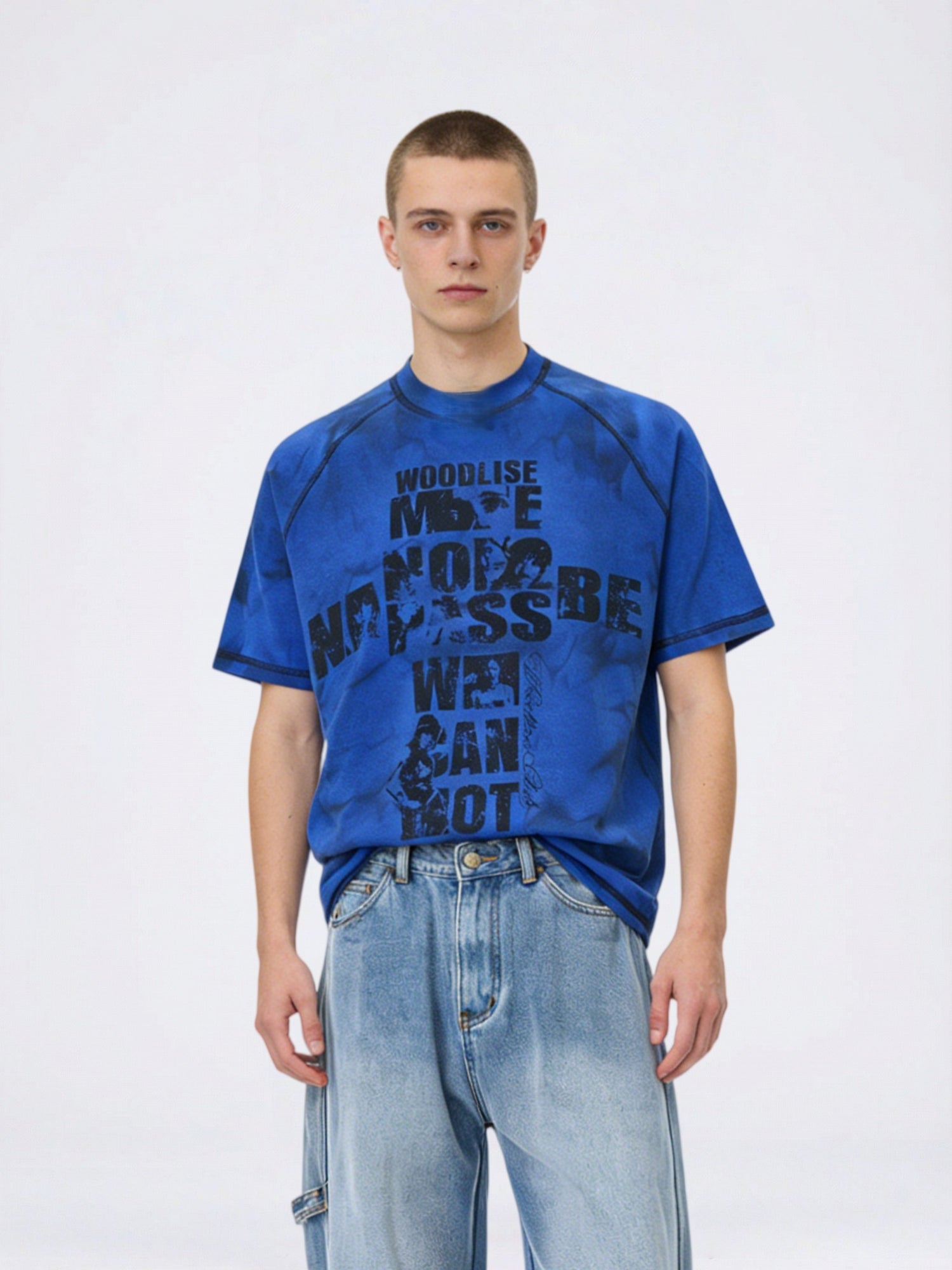 Distressed Portrait Letter Printed T-shirts