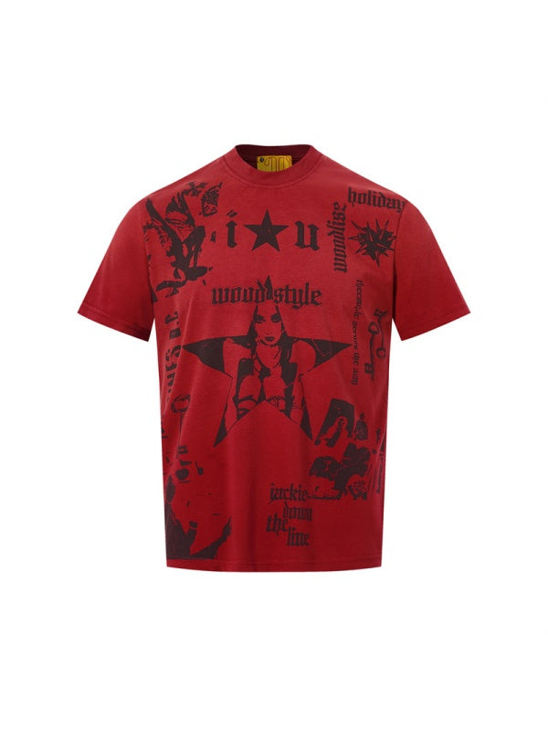 Punk Portrait Letter Graffiti Printed T-shirts