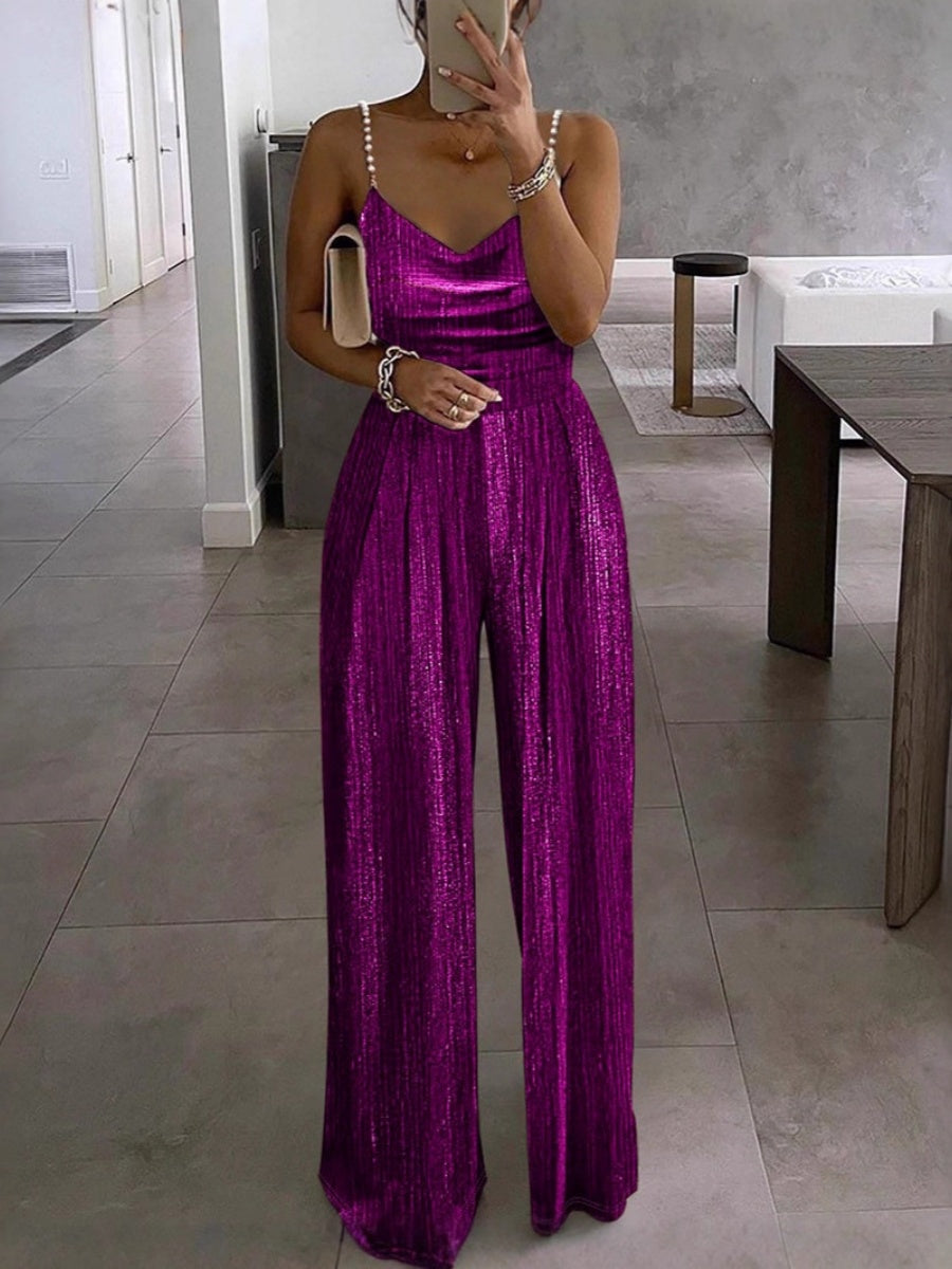Wide-leg Pants Camisoles Waist Metallic Color Jumpsuits