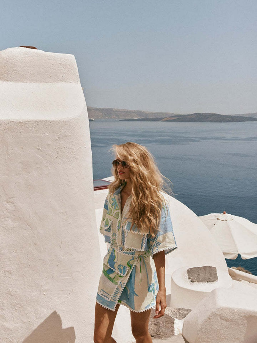 Ensemble deux pièces chemise et short élégant à imprimé géométrique.