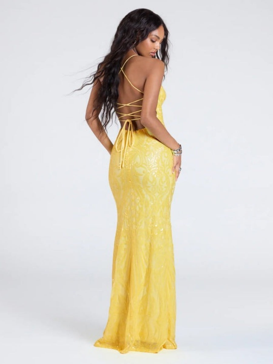 Robe longue de soirée bandage à sequins et décolleté en V