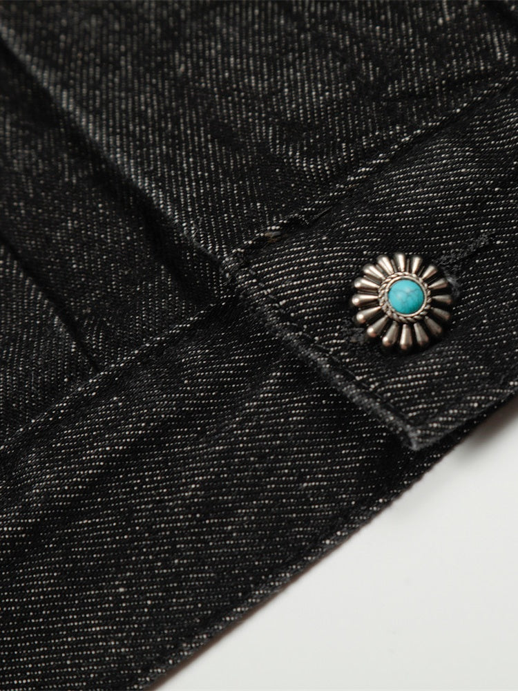 Veste en jean courte plissée à boutons style aviateur hip-hop
