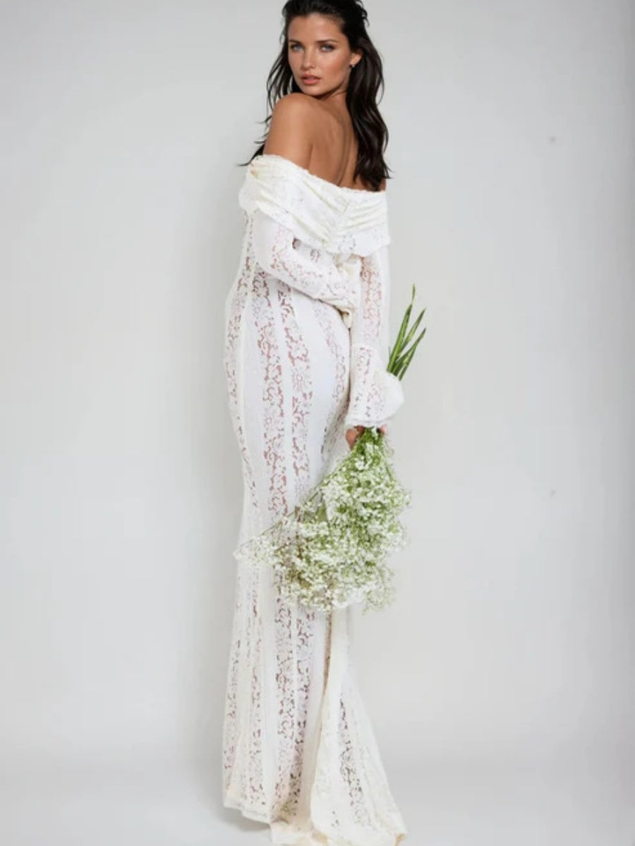 【EXPÉDITION NORMALE】Robes maxi moulantes en dentelle ajourée, épaules dénudées et manches évasées